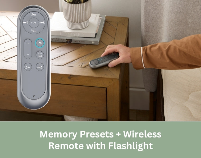 No more guessing. The wireless remote lets you save and return to your favorite positions with one touch. It’s also equipped with a built-in flashlight.